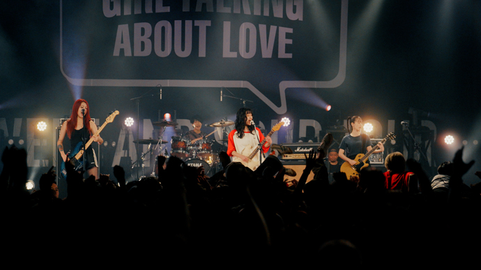 朝子はゴリラホールで働きながら、GIRL TALKING ABOUT LOVEのギター・ヴォーカルとして活動。メンバーもバイト仲間も、朝子の作る楽曲を愛し彼女のセンスと才能を疑っていないが、肝心の本人だけが自分を信じ切れずにいる。その迷いや自信の持てなさ加減が、朝子がバンドで夢を叶えることへ踏み出そうとする一歩を押し留めている。このあたり、夢を追う若者にありがちな"自分には才能がないと思い込んでしまう不安"や、"挑戦して失敗し傷付くことの怖さ"がとても生々しく映し出されている。