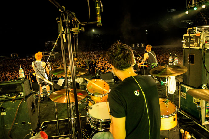 "持つべきものは友達やな!コラボというか、ちょっかい出したり砂糖醤油みたいな悪口とか。そういうの、京都大作戦の売りや。身内的なノリで行きますよ!だってみんな友達やからな!"とTAKUMAが言い終わると間髪入れずに「Focus」で叫び、「STONE COLD BREAK」が続くとオーディエンスもサークルやモッシュで応える!大阪籠球会とのコラボレーションで「Freedom」を披露したあとは、「2%」を投下。"俺たちは幸せになるために生まれてきたんだろ!諦めの悪い男になれよ!"と雨の寒さを忘れるほどの激しさで2万人が熱狂の渦を作りだす。"悔しかったこと、哀しかったこと、忘れたいこと、忘れられないこと。全部持って、その向こうへ行ってみようぜ"とTAKUMAが伝えてくる言葉を零さぬよう受け止め、本編最後の「その向こうへ」に突入。とたんに巻き起こったシンガロングと、見知らぬ隣の人とのハイタッチ。さらに、鳴り止まないハンドクラップで、大輪の笑顔がいくつも生み出されて本編終了!