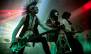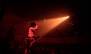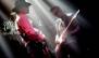 開演時間となり、暗闇に包まれた会場をステージの照明が怪しく照らすと、サブステージに大きな花束を持ったHIRØが登場。メイン・ステージの紗幕には雨が降り続ける映像が流れ、ダークな世界観で会場を包んだオープニング。雷鳴と共にヘヴィな演奏が響き、すべての始まりの曲である「REBORN」で、ライヴが本格スタート。視覚と聴覚だけでなく、鋭く重厚なサウンドや痛烈なメッセージが痛覚にも響く、一音一音に魂を込めた歌と演奏は圧巻のひと言。