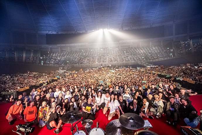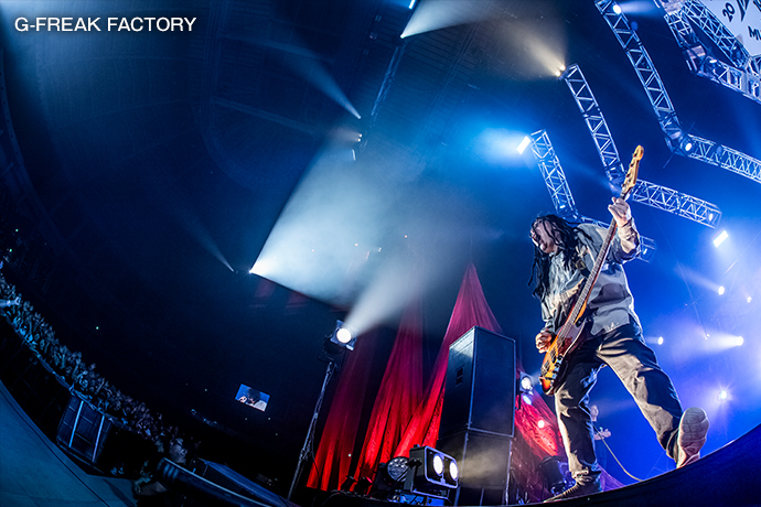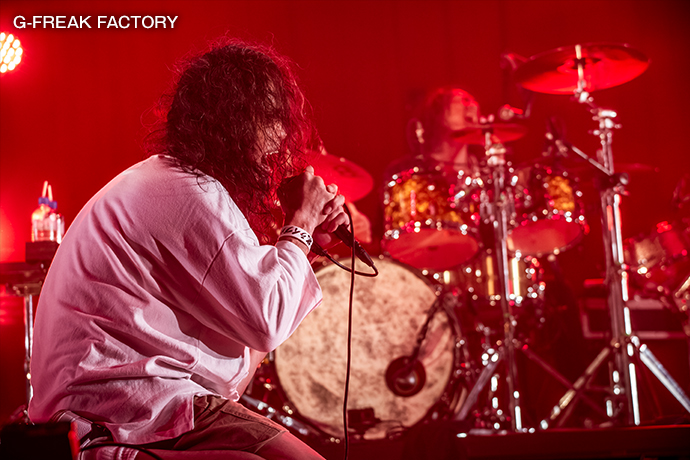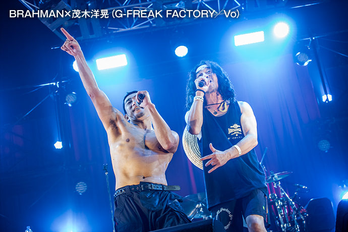 登場と共に大きな歓声が沸き起こったBRAHMAN。「charon」の温かく包み込むような幕開け、TOSHI-LOW(Vo)の"今年も呼んでくれてありがとう。BRAHMAN始めます"という言葉から一気呵成で「賽の河原」、「BEYOND THE MOUNTAIN」、「知らぬ存ぜぬ」と怒濤の流れで進む。「最後の少年」をG-FREAK FACTORYの茂木と共に歌い、ラストは"全ての苦境に"と言って「順風満帆」。盟友とこの日に捧げたステージに胸を熱くした。