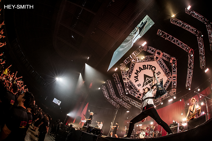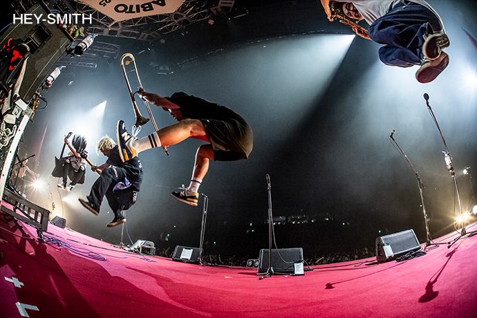 客席の密度と濃度をさらに加速させたのはHEY-SMITHだ。ダイバー続出、サークル同時多発、数え切れないヘッドバンギング、振り上げられた拳とシンガロング。「Summer Breeze」をみんなで歌い、「Don't Worry My Friend」で胸を焦がし、「Come back my dog」で暴れ尽くしたひとときだった。