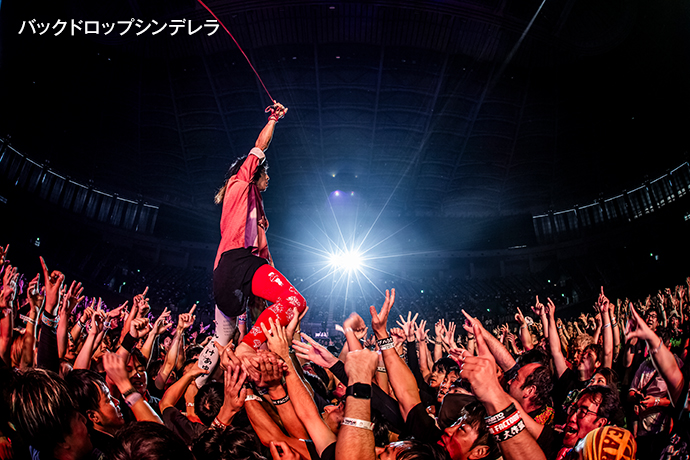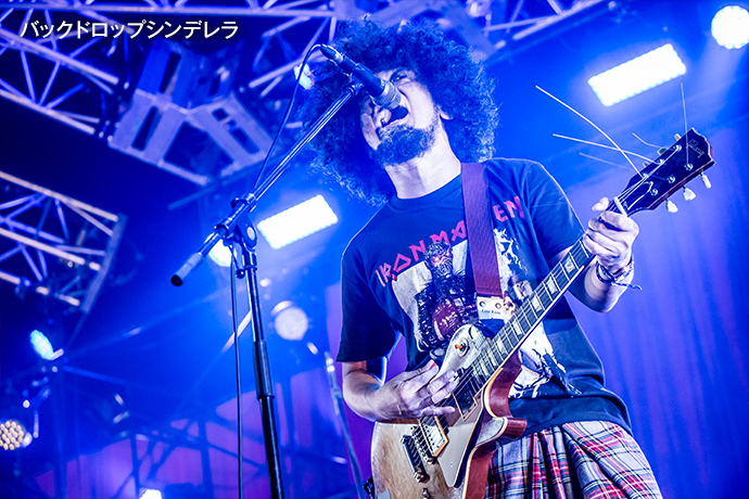 NAIKA MCの挨拶とラップで幕を開けた2日目。バックドロップシンデレラがこのステージに立つことができた喜びを爆発させ、でんでけあゆみ(Vo)がG-FREAK FACTORYと音楽に助けられた想いを語る。客席の興奮は朝から最高潮で、最後の「さらば青春のパンク」まで体力を惜しまず全力で暴れ尽くす。