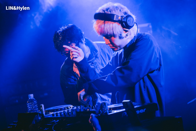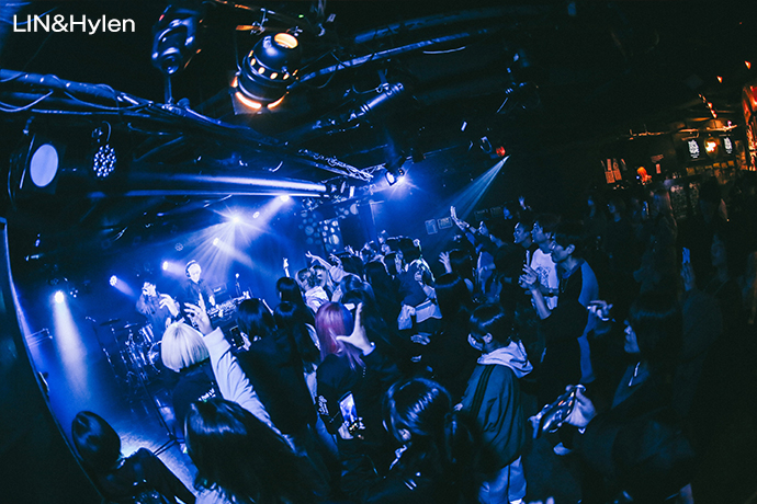 続いて、5人組ダンス・ヴォーカル・グループ"MADKID"のラッパー LINとコンポーザー/DJのHylenによるユニット LIN&Hylenが「Only U」、「Swell」(MADKID)でライヴをスタート。オートチューンと同期の機械的なサウンドと、ギターの生演奏によるグルーヴのケミストリーが新感覚だ。"ノンストップで行くんでよろしく"(LIN)と告げた後、「Aster」、「All Night」でHylenはギターを置いてDJプレイし、熱くなる会場にLINは上着を脱ぎ捨てる。"もっと激しいのいいですか!"と投下した「27 (feat. LIN)」(The Moment I Decide)はエモやハードコア好きも多いロカホリユーザーにとってはハイライトとなったに違いない。「Paranoid」(MADKID)ではお酒片手に身体を揺らす者、スマホ片手に撮影する映像がブレブレになりながら音に乗る者等、皆自由に楽しんでいた。ラストはMADKIDより「RISE」を披露。"時間余ったからもう1回これやっていい?"と、南米リミックスと言えばよいのか、太鼓とラップのポリリズムが癖になる楽曲(調べたところ"クンビアRISE"と呼ぶらしい)をボーナス・トラック的にプレイしステージを去った。
