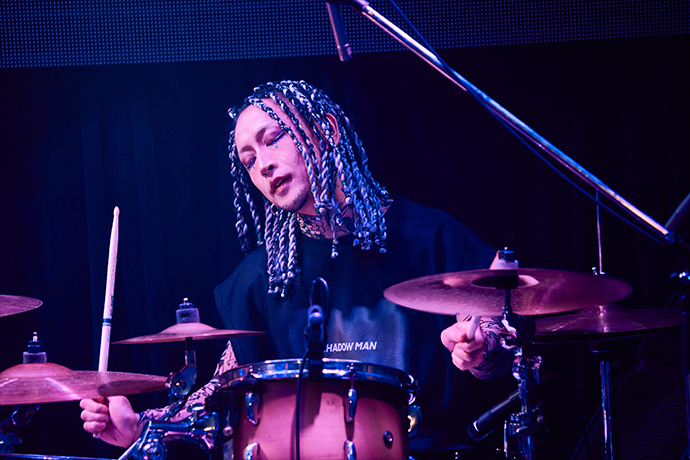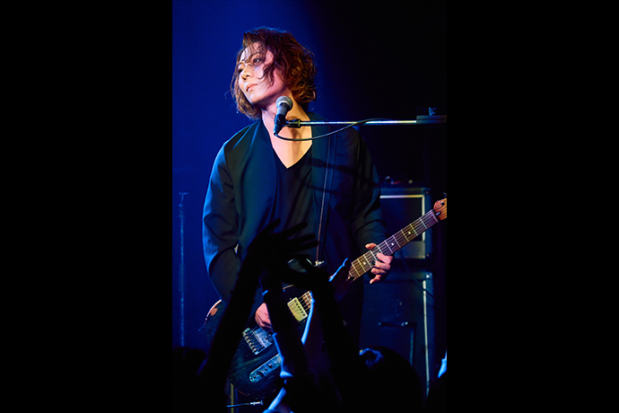 「水深」では、孤独や葛藤を歌う叫び交じりの歌声に大熊けいと邦夫のドラムを中心とした轟音が重なり、ステージ上を照らす海の底を思わせる照明も相まって、深淵へと突き落とされるような感覚に陥る。しかし、孤独や葛藤にもがいていた時間こそ、今となってはmitsuが飛躍するための力を蓄えるのに必要なものだったと思える説得力が宿り、決して"苦しさ"だけで終わることはない。同じ"暗さ"でも、「MIDNIGHT LOVER」では妖艶なギラつきへと転じ、mitsuがベースで先導するRENAに迫ったり最前列の男性に絡んだりと、艶やかな表情を見せた。