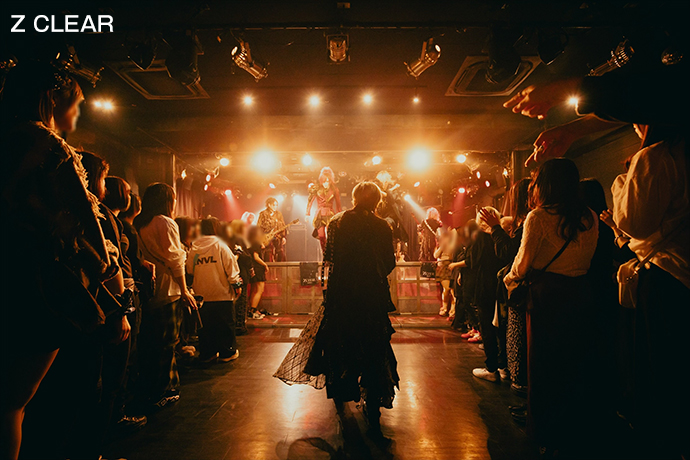 無音状態からいきなりヴォーカリスト AKIRAがエレアコをかき鳴らし始め、弾き語りスタイルからのバンドインを果たした「束狐」で観衆を一気に惹きつけたのは、昨夏よりPARAGUAS inc.所属となった広島出身のZ CLEAR。そんな彼等のプロフィールを楽曲化したかのような「広島」を筆頭に、今回のライヴでは"童子(わらし)"と呼ばれているファンと共に、限られた時間ながらも骨太でたくましいところを提示してくれていたように思う。