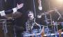 アンディのベースがゴリゴリ響く「黒鶏論-破壊篇-」、軽快に駆け抜ける「大日本黒鶏主義者聯盟行進曲ホ短調」を経て、シャッフル・ビートのムーディなイントロで世界観を作る「東京シンデレラ」、ツーステを誘発する「夢葬」とリズムで楽しませたこのブロック。雨の音から3拍子で聴かせる「極東恋時雨・藍」を披露したかと思えば、再び雨の音が流れるなか、ジョジョが舞台袖へ。ビニール傘を片手にマイク・スタンドの前へ戻ると始まったのは「極東恋時雨・紅」だ。カエデ(Dr)とのツイン・ヴォーカルで展開していく、哀愁漂うこの曲。情感のこもったジョジョの叫びが、そのストーリーにさらに深みを与えていた。