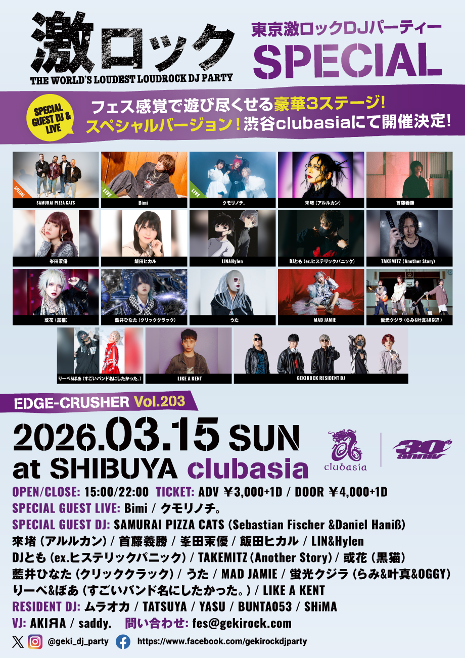 "東京激ロックDJパーティー EDGE-CRUSHER Vol.203"
