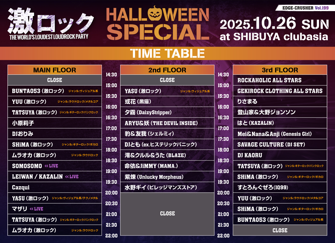 激ロックは、マキシマム ザ ホルモン、ONE OK ROCK、SiM、ラスベガス、WANIMA、マンウィズ、10-FEET、coldrain、ハイスタ、KEYTALKなどの邦楽ロックから、LINKIN PARK、SLIPKNOT、BMTH、GREEN DAYなど洋楽ロックまでが爆音でセレクトされるROCK DJ PARTYです☆